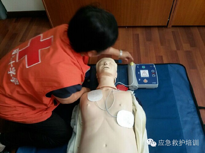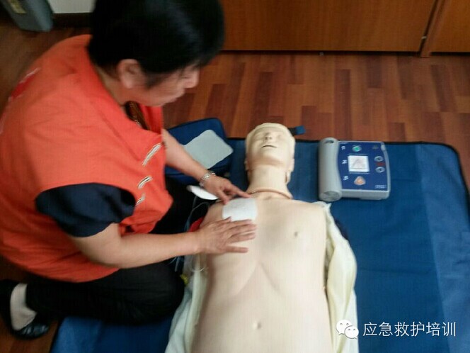 自動體外除顫器(AED)的使用∶體外心臟除顫適用于心室纖顫的傷病員。1、首先評估傷病員的情況,在無意識、無呼吸、無脈搏,出現(xiàn)心室纖顫、室性心動過速的情況下使用AED。2、按下開關,一個電極片貼在傷病員裸胸的右鎖骨下方,另一個貼在左乳房外側(cè),將電極與AED連接除顫時救護員及在場的所有人員不要接觸傷病員身體。3、分析后確認需要除顫,AED發(fā)出充電信號,自動充電完畢后,按動除顫放電鍵,完成一次除顫。4、電擊后立即進行5個周期的CPR(大約2分鐘) 然后檢查心跳是否恢復。